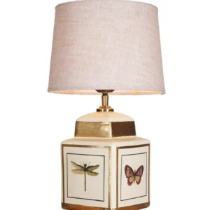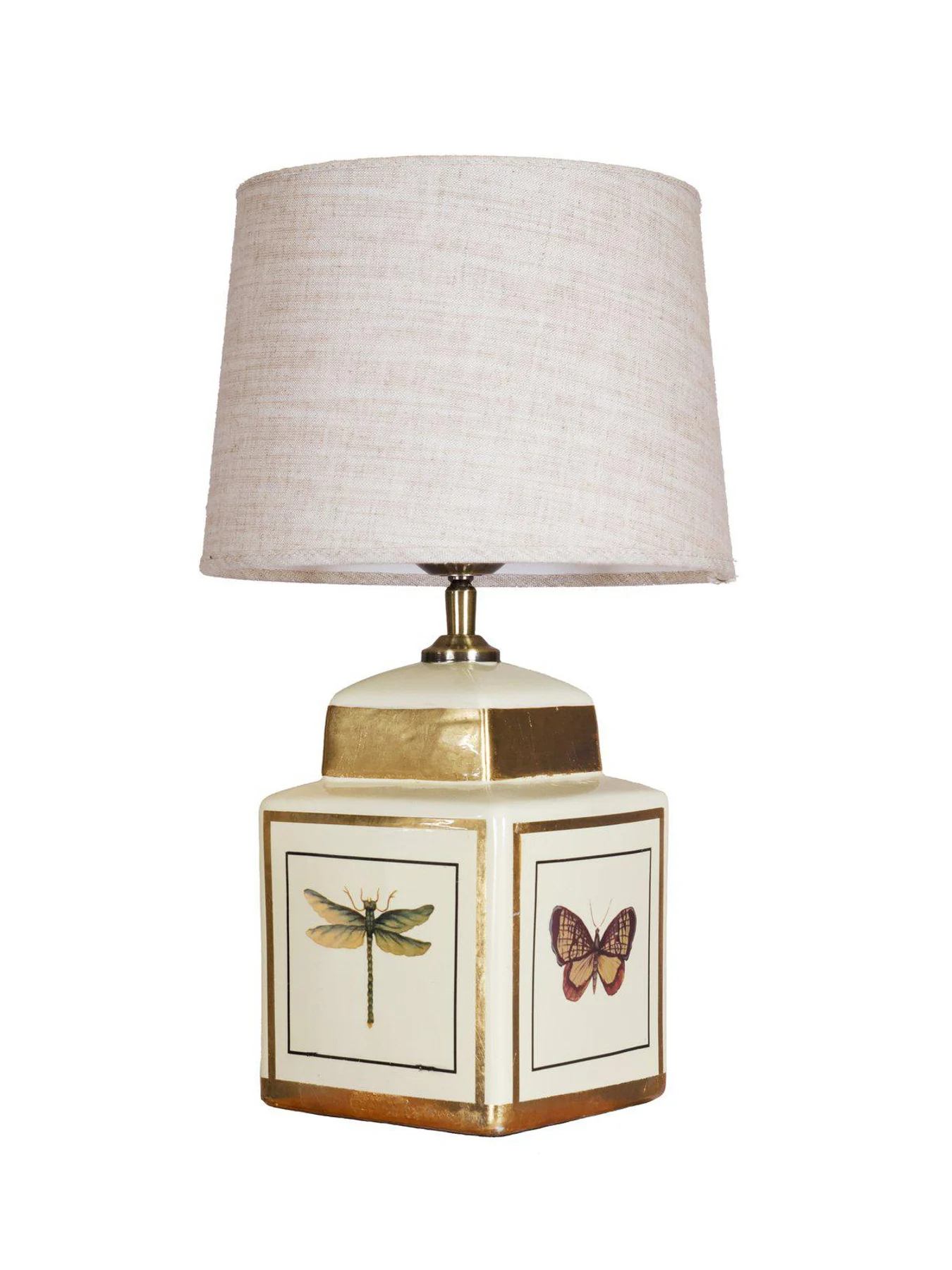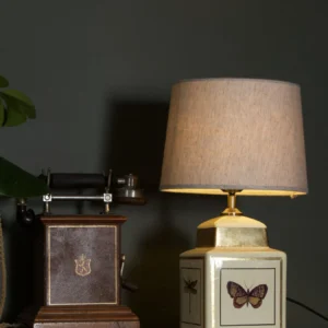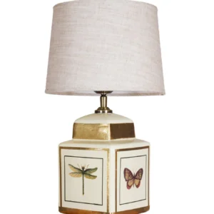 Denne dekorative bordlampen gir kunstnerisk sjarm i et mindre format – en keramisk base i en myk gul fargetone, utsmykket med håndmalte pastellsommerfugler og skimrende gulldetaljer. Den firkantede silhuetten gir lampen et rent, strukturert utseende, mens de delikate fargene og motivene tilfører varme og lekenhet. En raffinert blanding av design og personlighet som passer perfekt på nattbordet, i vinduskarmen eller i lesekroken. Lampen måler 45 cm i høyden og har en skjerm på 25 cm i diameter, og tilbyr en kompakt og brukervennlig størrelse som ikke går på bekostning av stilen. Den har en E27-sokkel (maks. 40 W) og leveres med en 180 cm lang svart tekstilledning med EU-plugg. Bryteren er plassert 50 cm fra basen for enkel tilgang. Lyskilde selges separat. En liten lampe med en dristig tilstedeværelse – ideell for å gi et snev av sjarm og individualitet til ethvert rom.
