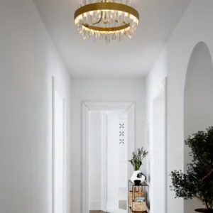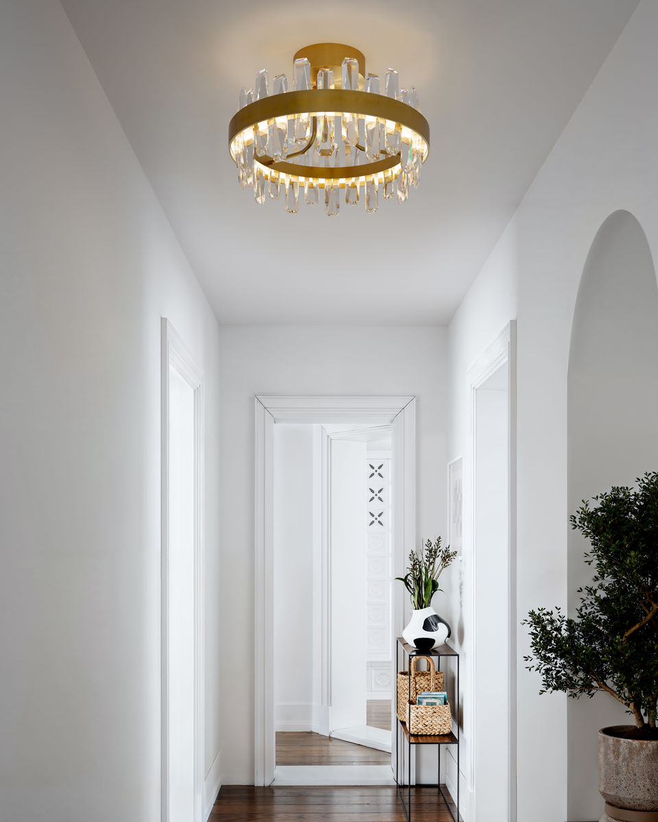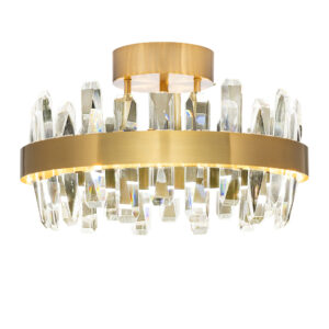 Plafond Triumph er en taklampe som umiddelbart tiltrekker seg oppmerksomhet og gir rommet en eksklusiv følelse. Med sine glassstaver i tre forskjellige størrelser skaper den en vakker balanse mellom eleganse og funksjonalitet. Den innebygde LED-strengen gir et varmt, innbydende lys. Den dekorative kombinasjonen av glass og messing gir et sofistikert uttrykk. Med en fargetemperatur på 2700 K passer Triumph utmerket både i små og store rom.
