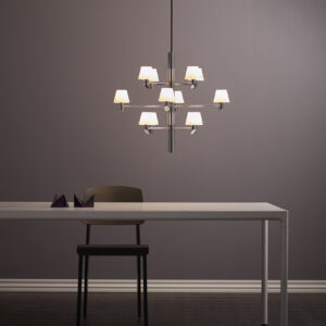 Et ikon. Gil fanger essensen av dansk design – klassisk, men likevel dristig, myk, men likevel strukturert. Et moderne blikkfang som reflekterer lys og liv med selvsikker eleganse. En storslått lysekrone der hver detalj balanserer varme toner med kjølige refleksjoner. Enten den henger over spisebordet eller lyser opp et stille hjørne, skaper Gil atmosfære, tilstedeværelse og den særegne Herstal-signaturen. 2,5 m ledning med takkopp inkludert for krokmontering. Lyskilder inkludert.