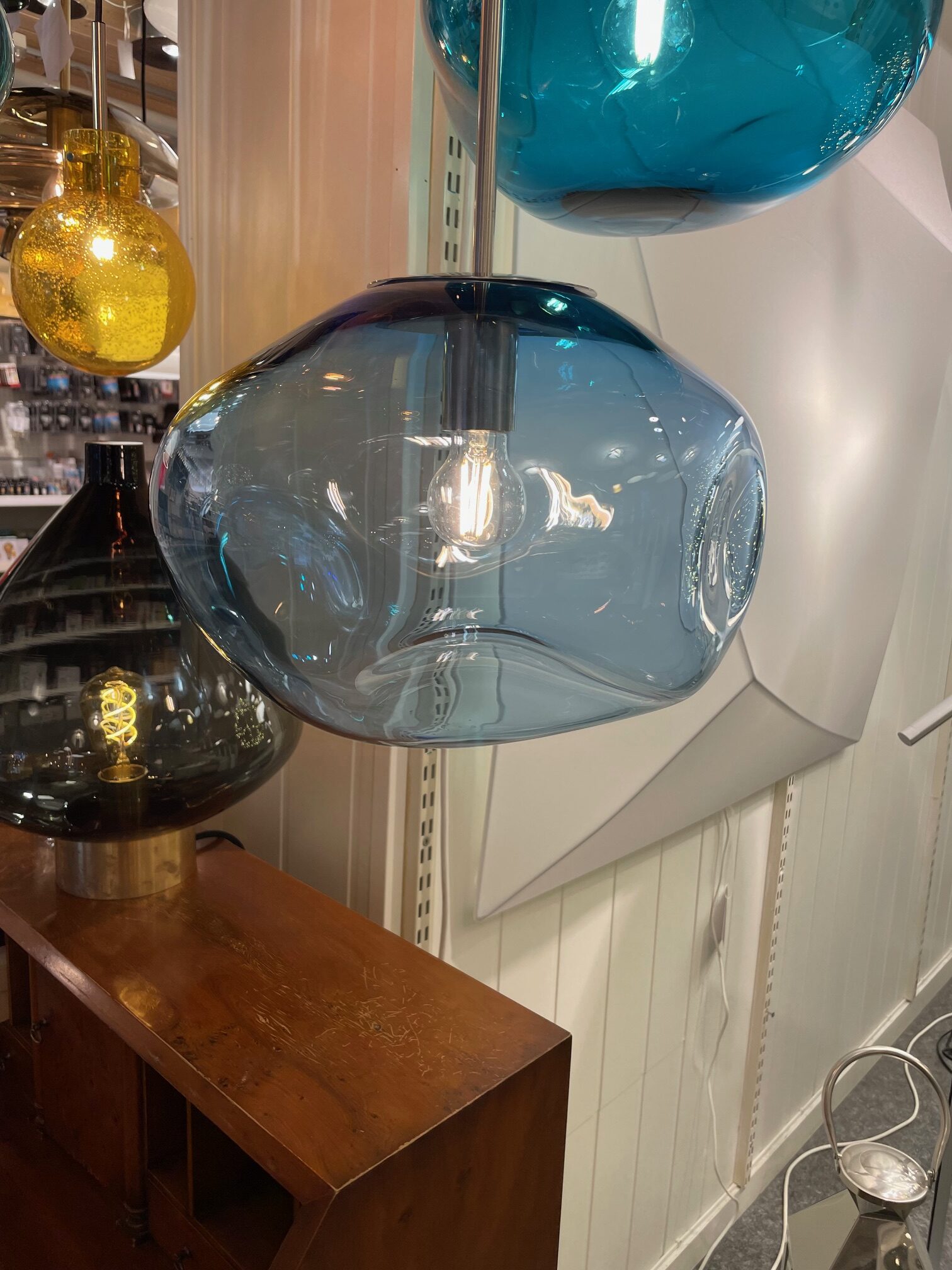 Assosiasjoner til klare sjøer og glitrende isbreer. Alle lampene er munnblåst og den organiske formen skapes når glassmassen er varm, dette gjør at hver eneste kuppel blir unik.