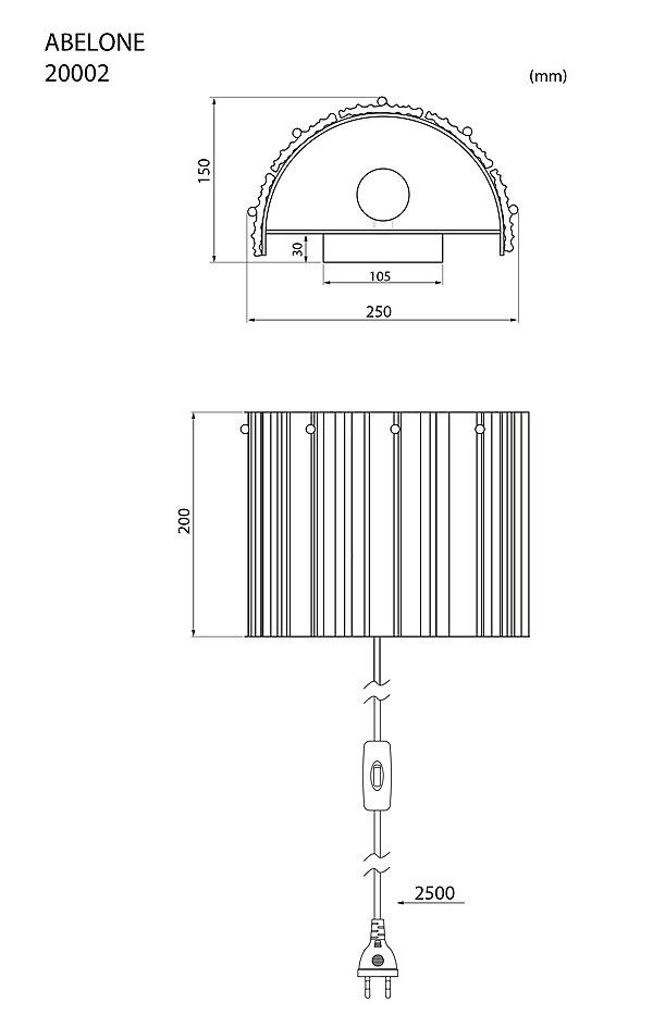 Abelone vegglampe – Amber/Sort
