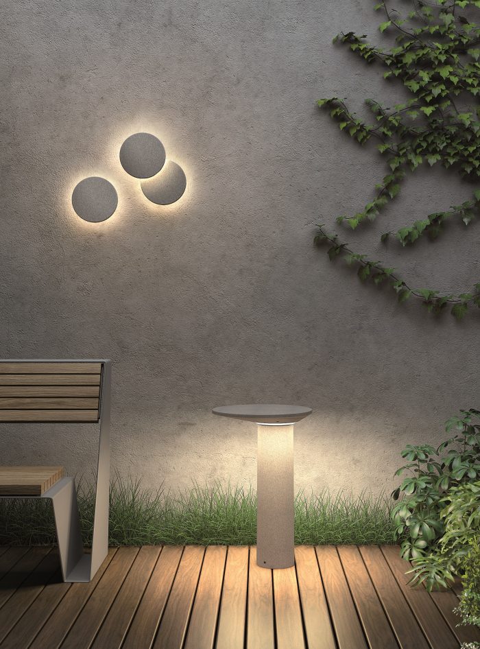 Moal er en serie i moderne og tidløst design som er laget av sement. Vegglampen inkluderer en utforingsring, slik at man kan overlappe flere vegglamper og skape en innbydende og stilig effekt mellom lys og skygge.